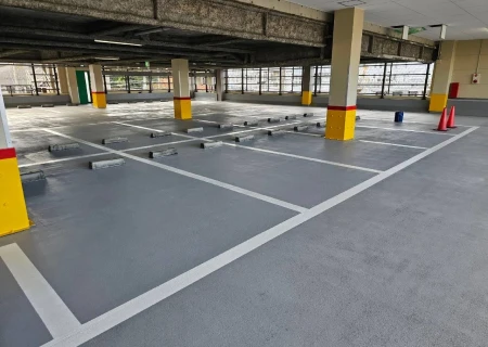 車両の出入りが激しく、雨風にもさらされる駐車場では、耐摩耗性・防滑性・防水性などが必須です。